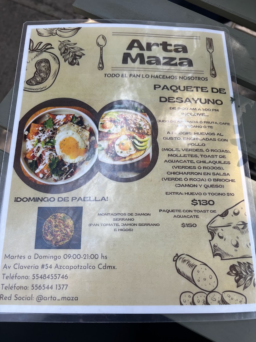 Welcome to ARTA MAZA, a delightful restaurant nestled in Claveria, Azcapotzalco, where culinary creativity meets quality ingredients. This gem offers a varied menu that guarantees to satisfy diverse palates. The standout feature is their freshly baked pastries, particularly the warm, cream-filled confections that have left patrons raving.